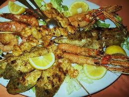 Cena a base di pesce a 28 euro (bevande incluse). Antipasto: pepata di cozze e vongole - Primo: Tagliatelle fatte in casa ai frutti di mare - Secondo: Arrosto al forno di rombo, spigola con sogliole e spiadini alla brace, insalata mista - Dessert: latteruolo.