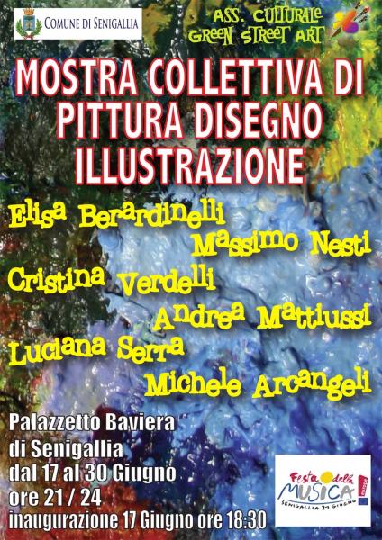 Artisti noti e altri che espongono per la prima volta, coordinati dall’Associazione Green Street Art in collaborazione con il Laboratorio Artistico di Via Verdi 156 a Senigallia, saranno insieme per presentare le loro opere, grazie alla partecipazione di “Festa della Musica” (21 - 23 giugno).
