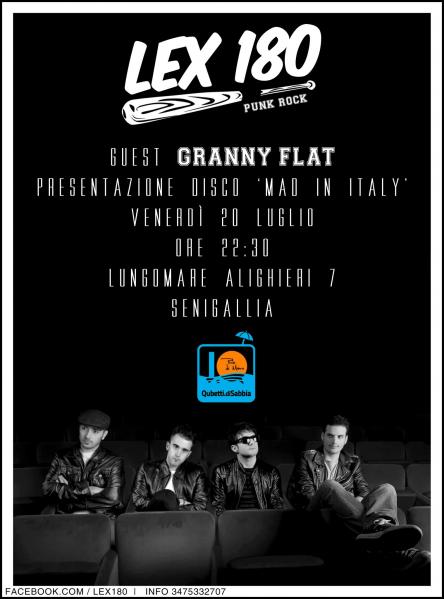 Tornano i LEX 180 e lo fanno presentando al Qubetti Di Sabbia il loro nuovo lavoro, un disco veloce e diretto, "Mad In Italy", per una serata all’insegna del Punk-Rock! Apriranno le danze i marottesi Granny Flat.