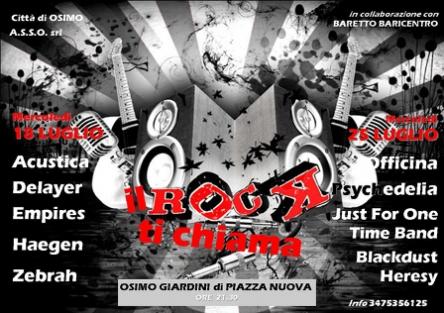 Il 18 luglio si esibiranno: Acustica, Delayer, Empires, Haegen, Zebrah, mentre il 25 luglio sarà la volta di: Officina, Psychedelia, Just for One, Time Band, Blackdust, Heresy.Info: 347.5356125