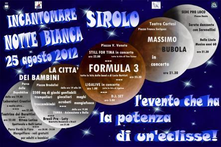 Tanti saranno i concerti e gli spettacoli per grandi e per piccini, che animeranno il centro storico di Sirolo e le zone adiacenti. L’edizione di quest’anno si caratterizza anzitutto per essere la “Notte dei Bambini”. Infatti, dalle ore 19 in piazza Brodolini, su una superficie di mq 2500, ed al Parco della Repubblica, della superficie di oltre un ettaro di terreno, verrà allestita una vera e propria CITTA’ DEI BAMBINI con grandi giochi gonfiabili (grandi scivoli, saltarelli, ecc.), trampolieri, giocolieri, maghi, acrobati e mangiafuoco.