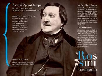 Dal 12 agosto la casa natale del compositore espone i cartelloni del Rossini Opera Festival interpretati da sei artisti incisori provenienti da Olanda, Polonia, Lituania, Stati Uniti e Italia: Andrzej Marian Bartczak, Egidijus Rudinskas, Gus Mazzocca, Kestutis Vasiliunas, Joseph Johannes Visser e Giovanni Piccini hanno interpretato l’opera del grande compositore pesarese variando forma, colore e ritmo musicale, in forma, colore e ritmo grafico.