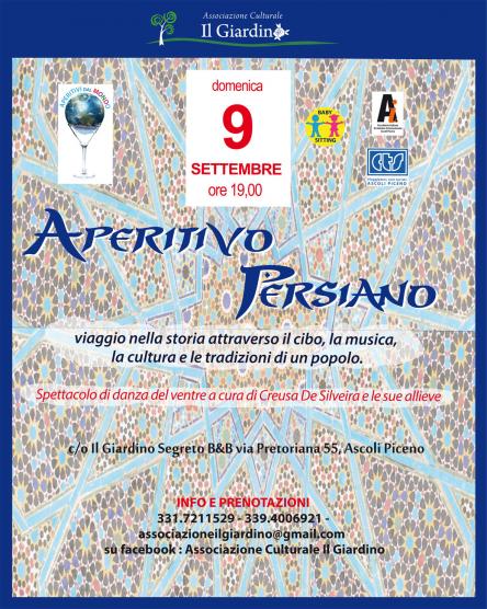 A completare questa atmosfera, cibo preparato secondo la tradizione culinaria persiana, il piatto principale della serata sarà il riso: - Assaggi di "mastemusir" - Riso con carne di manzo e fagiolini verdi e zafferano - Riso con verdure e zafferano - Riso con pollo e zafferano - Riso bianco accompagnato da vari condimenti - Fagiolini bianchi persiani - Vino della cantina Pantaleone - Tè persiano e biscotti secchi.