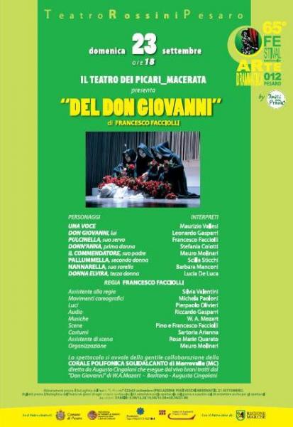 La 65° edizione del Festival Nazionale d'Arte Drammatica, organizzata dall'Associazione "Amici della Prosa", presieduta da Giovanni Paccapelo, inizia quest'anno, eccezionalmente, con uno spettacolo festivo pomeridiano. Si tratta di "Del Don Giovanni", una rivisitazione del celebre mito a cura di Francesco