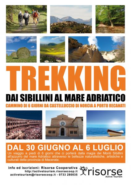 Ritrovo a Castelluccio di Norcia domenica 30 giugno Partenza Da Castelluccio di Norcia lunedi 1 luglio Arrivo a Porto Recanati sabato 6 luglio Le Marche sono state definite l’Italia in una Regione, questo cammino ci offre la possibilità di scoprire i vari ambienti naturali che rendono unico questo scrigno del centro Italia. A piedi partiremo dallo splendido scenario delle Piane di Castelluccio (1452 m.sl.m), attraverso boschi, valli e le alte creste dei M. Sibillini, scenderemo a Visso (700 m.s.l.m), antico paesino fondato prima di Roma dal centro storico caratteristico ricco di storia, arte e cultura.Ogni tappa avrà delle caratteristiche diverse, dopo aver toccato il Santuario di Macereto (100 m.s.l.m.) arriveremo a Fiastra (700 m.s.l.m.) e il suo lago circondato dalle montagne e da dove il panorama comincia a cambiare lasciando più spazio alle colline del pre-appennino. Attraverso l’insolito scenario delle Lame Rosse visiteremo Montalto di Cessapalombo (550 m.s.l.m.) dove vive ancora l’antico mestiere del Carbonaio e nota per l’eccidio di partigiani durante la seconda Guerra Mondiale. Passeggeremo lungo strade secondarie o abbandonate per arrivare fino a Caldarola (300 m.s.l.m.), terra di Castelli e del famoso olio di Coroncina. Un tratto della Vecchia Via Lauretana ci condurrà fino a Tolentino nota per la splendida Basilica di S. Nicola e il suo centro storico, una volta attraversato il Ponte del Diavolo saremo di nuovo in mezzo alle colline per arrivare fino alla monumentale Abazia Cistercense di Chiaravalle di Fiastra collocata nel tipico paesaggio di campagna marchigiana. Da qui saliremo in treno per arrivare fino a Macerata, capoluogo dell’omonima provincia e città ricca di arte e cultura (celebre l’arena Sferisterio che ospita il famoso festival operistico).Le ultime tappe ci porteranno fino a Recanati (296 m.s.l.m), città natale del poeta G. Leopardi e del tenore B. Gigli adagiata su di un colle che si affaccia ad ovest sulla catena dell’Appennino e ad Est da dove proviene la brezza e il profumo del mare. Attraverso le colline che degradano sempre più in basso arriveremo finalmente in riva al mare di Porto Recanati antica cittadina sorta in età romana a difesa delle incursioni via mare dei pirati, caratterizzata dal suo Castello Svevo. Il cammino sarà condotto da guide escursionistiche ambientali abilitate. Il pernottamento sarà effettuato presso le strutture presenti nei luoghi di arrivo. Il pranzo sarà al sacco mentre cena e colazione saranno liberi. Il numero minimo di partecipanti è di 8 persone.Per info, programma completo e costi visita:http://activetourism.risorsecoop.it o chiamaci allo 0733280035