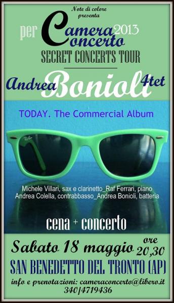 II trio presenterà il disco "TODAY. The commercial album" (Zonedimusica) ______________________________________ ABOUT ANDREA BONIOLI 4TET