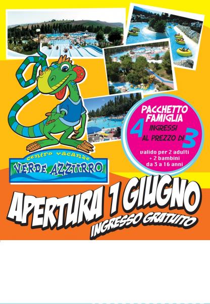 Dal 1 giugno inizia la stagione estiva all'Acquaparco Verde Azzurro.Vi aspettiamo tutti i giorni. Per info su orari e prezzi Acquaparco, ristorante e servizi ,contattateci allo 0733/615262 o visitate il nostro sito www.verdeazzurro.it