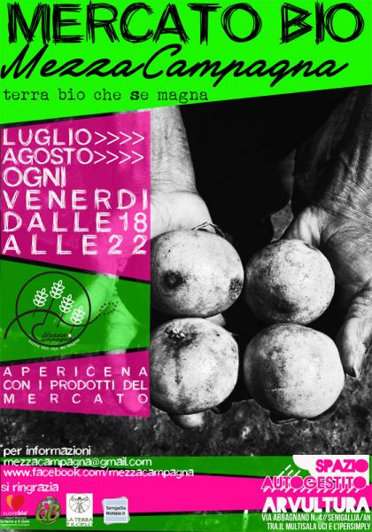 Tutti i venerdì si svolge il Mercato Bio Mezza Campagna allo Spazio Autogestito Arvultùra in via Abbagnano a Senigallia, tra l’UCI Cinema e il Centro Commerciale Il Molino, appuntamento con aziende agricole del territorio e i loro prodotti biologici.