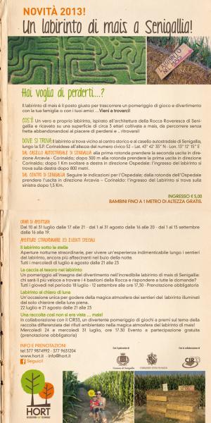 COS'E' Un vero e proprio labirinto, ispirato all'architettura della Rocca Roveresca di Senigallia e ricavato su una superficie di circa 3 ettari coltivata a mais, da percorrere senza fretta abbandonandosi al piacere di perdersi e ... ritrovarsi!
