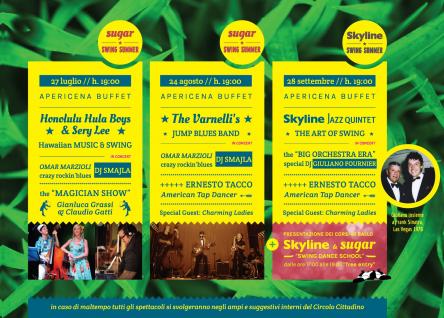 Skyline & sugar SWING per l'estate vi propone tutto questo nello splendido parco del Circolo Cittadino di Jesi, appositamente acceso con allestimenti ad hoc e luminarie suggestive per godere la magia del verde e della notte!