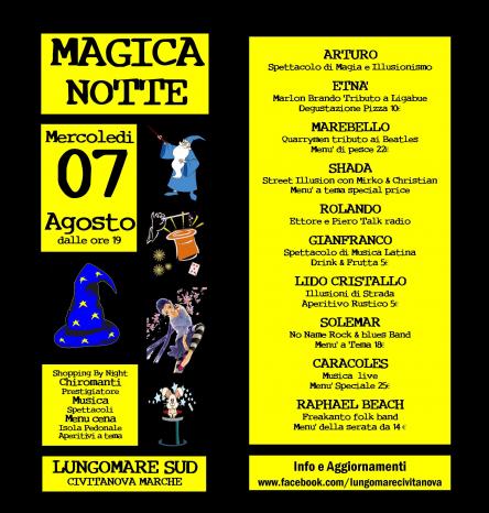 | data: | mercoledì 7 agosto 2013, dalle 19:00 fino a tarda notte. |