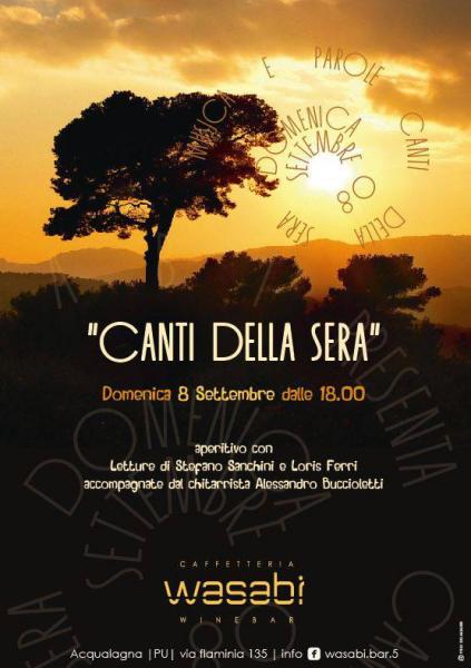 Musica e Parole vi aspettano presso Wasabi caffetteria winebar Domenica 8 Settembre dalle ore 18.00, con la partecipazione di Stefano Sanchini, Loris Ferri e il chitarrista Alessandro Buccioletti. Non mancate!!
