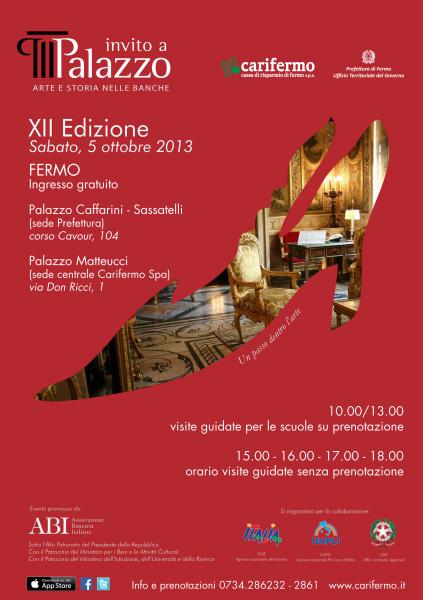La Carifermo in collaborazione e d’intesa con la Prefettura – Ufficio Territoriale del Governo di Fermo, sabato 5 ottobre apre le porte dei Palazzi Caffarini-Sassatelli e Matteucci a Fermo.