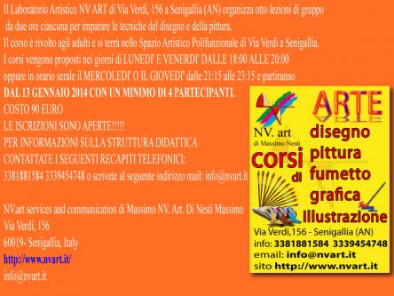 Il Laboratorio Artistico NV ART di Via Verdi, 156 a Senigallia (AN) organizza otto lezioni di gruppo da due ore ciascuna per imparare le tecniche del disegno e della pittura. Il corso è rivolto agli adulti e si terrà nello Spazio Artistico Polifunzionale di Via Verdi a Senigallia.