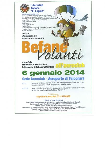 e dai soci dell'Aero Club, le Befane del 2014 saranno liete di farsi fotografare con i piccoli e distribuire i dolci, i giochi per i bambini ma anche i doni riservati al gruppo di ragazzi del centro Bignamini-Fondazione Don Gnocchi cui è destinata una raccolta fondi da parte dell’Aero Club in collaborazione con tutti gli ospiti.
