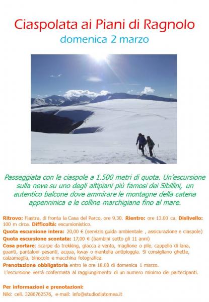 Quota escursione intera:20,00 € (servizio guida ambientale , assicurazione e ciaspole)