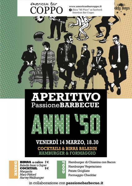 Venerdì 14 marzo dalle ore 18.30 la musica, il gusto e lo spirito anni 50 sbarca all’American Bar Coppo di Sirolo (An), per APERITIVO PASSIONE BARBECUE: ANNI 50.