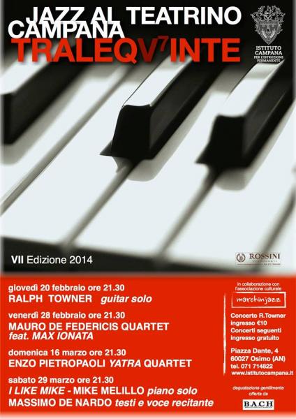 VII Edizione 2014 della rassegna jazz TRA LE QUINTE al Teatrino Campana, in collaborazione con l'associazione culturale Marchinjazz :