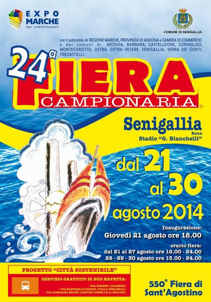 Anche quest’anno l’Expo Marche organizza, in collaborazione con il Comune di Senigallia, la 24ª edizione della Fiera Campionaria di S. Agostinoche si terrà dal 21 al 30 agosto nella zona dello stadio “G. Bianchelli” di Senigallia.