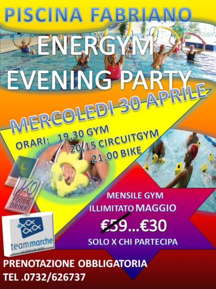 la Piscina Comunale di Fabriano organizza nella serata di Mercoledì 30 Aprile un evento acquafitness gratuito aperto a tutti!! A partire dalle 19.30 le attività saranno le seguenti Acquagym, CircuitGym e Hydrobike!! I partecipanti all'evento potranno acquistare il mensile acquagym del mese di maggio a soli 30 euro (invece che 59)!! La prenotazione è obbligatoria tel 0732.626737 (segreteria piscina)