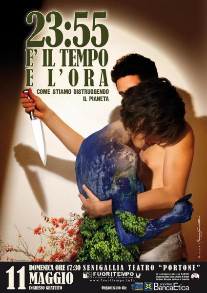 P { margin-bottom: 0.21cm; } Domenica 11 maggio alle ore 17,30 al Teatro Portone di Senigallia, il gruppo Fuoritempo porterà in scena “23:55 E' il tempo e l'ora”. Lo spettacolo teatrale analizza la società nei nostri stili di vita: agricoltura e petrolio, energia e trasporti, popolazione, rifiuti, disparità di ricchezza, acqua pubblica e risorse idriche, suolo e vegetazione e riscaldamento globale. La rappresentazione dell'11 maggio è stata organizzata in occasione dei 15 anni di Banca Etica, la prima banca italiana dedita alla finanza etica. Un anniversario che suggella il passaggio dalla fase pioneristica della finanza etica al suo consolidamento in un modello ormai strutturato e pronto ad aprirsi a nuovi settori dell’economia responsabile e sostenibile. In tutto questo Banca Etica è impegnata a trovare soluzioni partendo dai suoi principi fondativi, sanciti nell'articolo 5 del suo statuto: trasparenza, partecipazione, equità, sobrietà, attenzione alle conseguenze non economiche delle azioni economiche, credito come diritto umano.