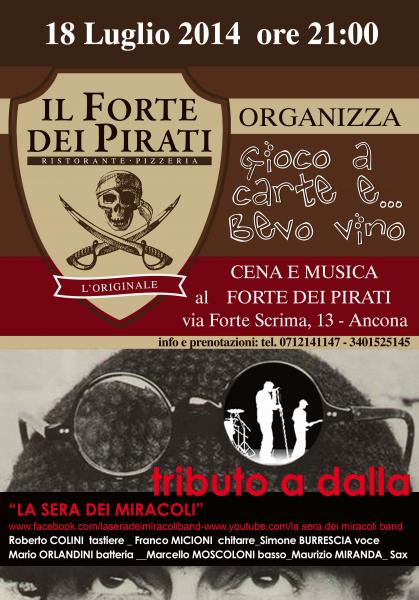 Nel suggestivo ambiente esterno del Ristorante Forte dei Pirati o nella sua splendida veranda con vista Duomo e mare, potrai mangiare alla carta ed ascoltare il concerto del gruppo musicale “LA SERA DEI MIRACOLI”
