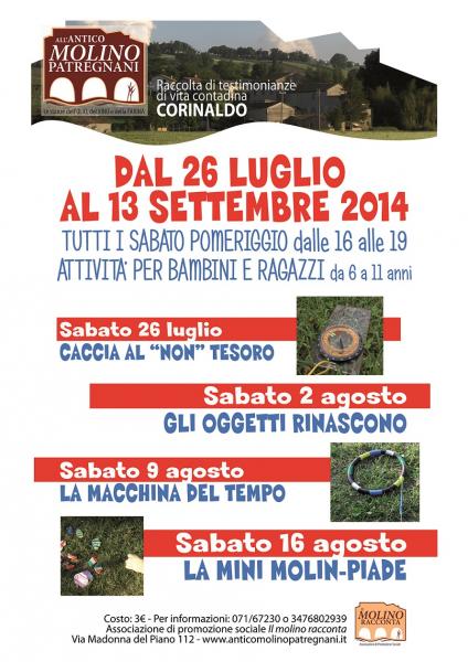 Appuntamento tutti i sabato pomeriggio presso l'Antico Molino Patregnani per bambini e ragazzi dai 6 agli 11 anni per divertirsi con tante attività di laboratorio.