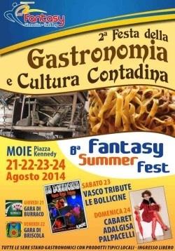 Quattro giorni di buona cucina, musica dal vivo, divertimento e occasioni di incontro. Questo in estrema sintesi il programma dell'edizione 2014: giovedì 21 torneo di Burraco, venerdì 22 torneo di Briscola. Ad alternarsi sul palco dell'area artisti e band musicali, fra le quali da segnalare sabato 23 serata di musica live con Le Bollicine Cover Band Vasco, domenica 24 serata cabaret con l'attrice comica Lucia Franoni (in arte Adalgisa Palpacelli) e Francesco Favi. Tutte le sere sarà possibile cenare negli stand gastronomici allestiti all'interno della festa, gustando i piatti della cucina tipica marchigiana e il verdicchio doc dell'osteria. Ingresso Libero.