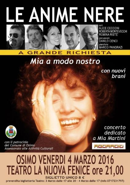 Le Anime Nere dedicano un concerto a Mia Martini con tutti i più grndi successi dell'indimenticabile Mimì.