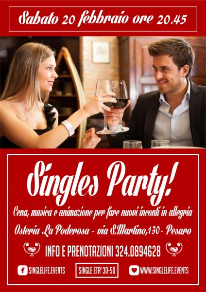 Se San Valentino non è la tua festa ma anche San Faustino non ti sarà stato d'aiuto, Single Life ti viene in soccorso con il Singles Party di sabato 20 febbraio.