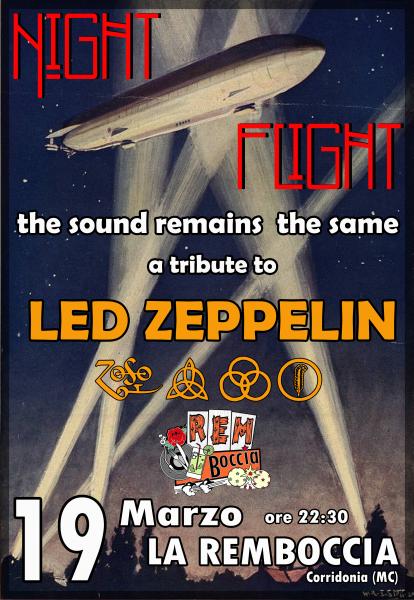 Con i Night Flight ripercorreremo dal vivo tutta la discografia della leggendaria band inglese dei Led Zeppelin, dai brani più diretti dei primi dischi sino ai pezzi più articolati degli ultimi lavori.