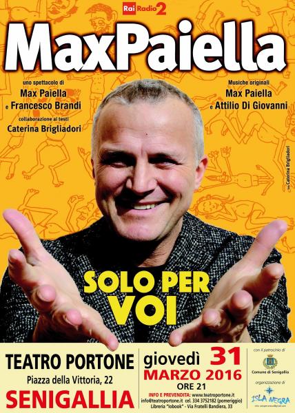Direttamente dalla trasmissione "Il ruggito del coniglio" di Radio2, Max Paiella, comico, imitatore, cantante e musicista, giovedì 31 marzo alle ore 21.00 al Teatro Portone di Senigallia imbraccia la chitarra per rivelarci i segreti del mondo della musica, i racconti che possono stare dietro all’universo di suoni cui siamo esposti quotidianamente. Suoni casuali, altre volte solo rumori… Altre volte suoni precisi, costruiti ad arte per trasmettere un’idea, conquistarci, sedurci.