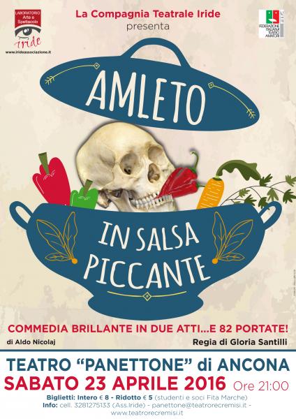"Amleto in salsa piccante" è una sapiente ed esilerante riscrittura del capolavoro scespiriano: la tragedia del principe di danimarca spiata e rivissuta nelle odorose atmosfere della cucina del castello di Elsinore tra barattoli, arrosti, salse piccanti e veleni per topi. Il dramma si trasforma così in una sorta di fiaba divertente che veleggia tra amori, passioni e odi, una fiaba in cui accanto ai blasionati parotagonisti, ironicamente disegnati dal tratto di Aldo Nicolaj, prendono vita personaggi della cucina fin'ora sconosciuti.