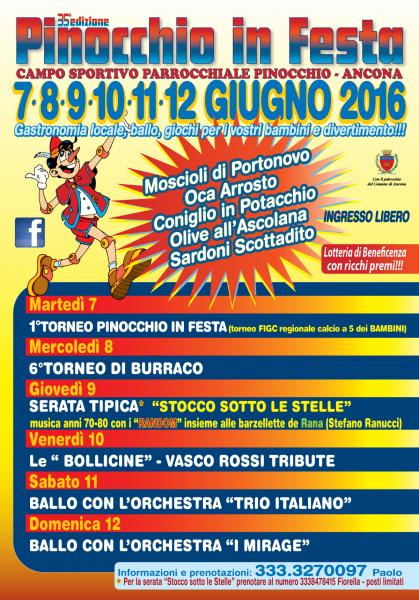 35° edizione di "PINOCCHIO IN FESTA" dal 7 al 12 giugno 2016 presso il parco della Parrocchia San Michele Arcangelo – via monte d’ago 89 - Pinocchio, Ancona