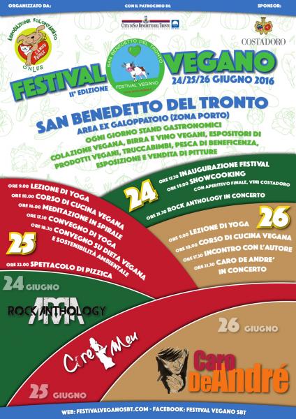 L’evento si svolgerà nelle giornate del 24, 25 e 26 Giugno 2016 presso l'area ex galoppatoio e, come nella scorsa edizione, oltre alla preparazione di cibi vegani, sarà allestito un mini villaggio espositivo a disposizione delle aziende che operano nel rispetto dei principi vegani e ogni giorno saranno organizzati eventi culturali, spettacoli e giochi di animazione per bambini.
