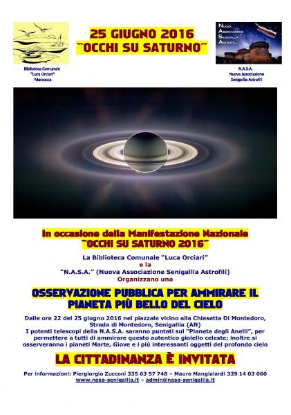 In occasione della manifestazione nazionale "OCCHI SU SATURNO 2016" la Biblioteca Comunale "Luca Orciari" e la "N.A.S.A." (Nuova Associazione Senigallia Astrofili) organizzano una