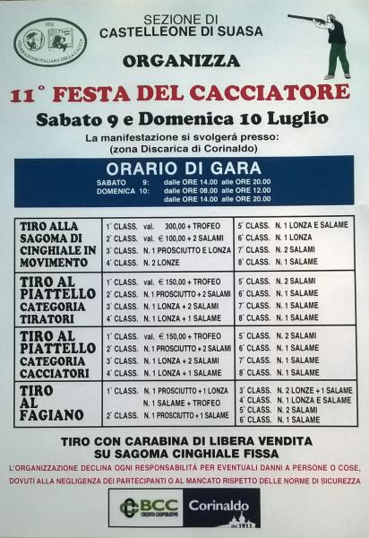 Organizzata dalla Sezione di Castelleone di Suasa, Sabato 9 e Domenica 10 Luglio, nella zona della Discarica di Corinaldo, con tiro alla sagoma di cinghiale in movimento, tiro al piattello, tiro al fagiano e tiro con carabina su sagoma di cinghiale.