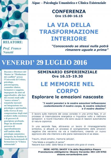 - SEMINARIO ESPERIENZIALE (Ore 16.15-19.30)