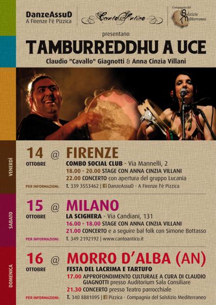 Due voci, due tamburi per raccontare il mondo musicale Salentino dove i ritmi da ballo della “Pizzica Pizzica” si intrecciano con “canti alla stisa (canto tradizionale polifonico), canti d’amore, stornelli, canti d’osteria e di sdegno”. Il tutto immaginato da due artisti che dai primi anni novanta hanno deciso di amare la tradizione musicale salentina facendola conoscere a livello internazionale, oggi il Salento (Puglia-Italia) è sicuramente una delle zone nel Mediterraneo dove la musica tradizionale ha contribuito alla valorizzazione del territorio e il progetto punta soprattutto a valorizzare i canti e i ritmi del popolo salentino facendo un percorso sonoro che grazie alle ricerche svolte negli anni 50/60 da Alan Lomax ed Ernesto De Martino ci consegnano vari stili di canto che il Salento conserva.