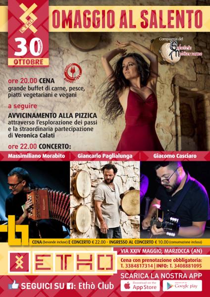 L'Ethò e la Compagnia del Solstizio Mediterraneo organizzano una serata di grande prestigio che ospiterà alcuni dei nomi più rappresentativi della scena della pizzica salentina: Giancarlo Paglialunga, Massimiliano Morabito, Giacomo Casciaro e Veronica Calati.
