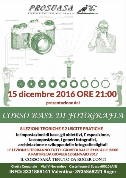 Finalmente ci siamo..il CORSO BASE DI FOTOGRAFIA sta per partire!! Ci vediamo il 15 DICEMBRE ALLE 21 presso la Grotta comunale di Castelleone di Suasa per presentarvi la nostra proposta.... NON MANCARE!!Per info333.1888141 Valentina333.6671451 Mircoprosuasa@gmail.com