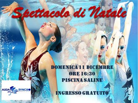 La società di nuoto sincronizzato Audasyncro di Senigallia, vi invita a partecipare al consueto saggio di Natale che si terrà Domenica 11 Dicembre alle ore 16.30, presso la piscina Saline di Senigallia.