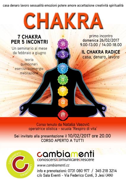 CHAKRA NELLA VITA QUOTIDIANATI SENTI SICURO E CREDI DI VIVERE LA VITA COME DESIDERI? QUALE AREA DELLA TUA VITA VORRESTI ORGANIZZARE MEGLIO? TI PIACE CASA TUA? IL TUO LAVORO PER TE E' PIACEVOLE O FATICOSO?Questo progetto è un ciclo di seminari: sono previsti un incontro di presentazione e 5 giornate di seminario. I seminari si terranno una volta al mese di domenica, da febbraio a giugno 2017 con i seguenti orari: 9.00-13.00, 14.00-18.00La frequenza di un seminario non è legata alla partecipazione ai seminari precedenti e non richiede conoscenze specifiche.Primo incontroMULADARA, IL CHAKRA RADICE: CASA, SOLDI, LAVORO