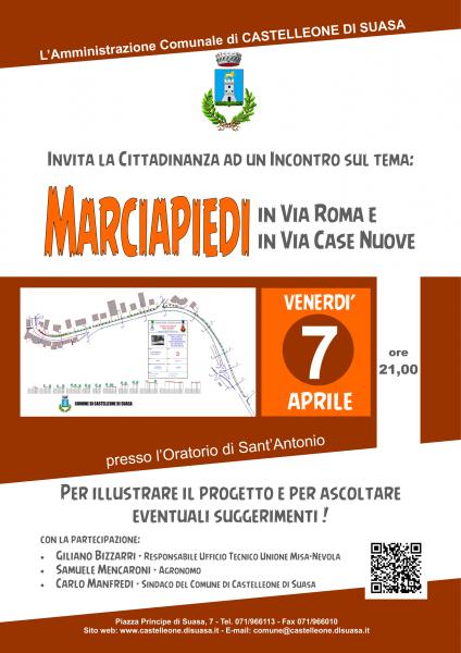 L'Amministrazione Comunale ha organizzato un incontro pubblico per illustrare il progetto di rifacimento dei marciapiedi lungo Via Roma e Via Case Nuove che riqualificherà il centro abitato e garantirà un utilizzo in sicurezza da parte dei pedoni, con la partecipazione di:- Giliano Bizzarri - Responsabile Ufficio Tecnico Unione Misa Nevola- Samuele Mencaroni - Agronomo- Carlo Manfredi - Sindaco del Comune di Castelleone di Suasa.