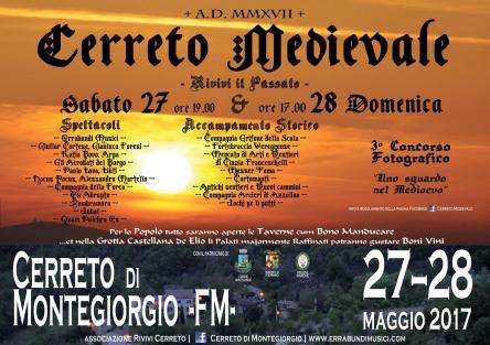sabato 27 e domenica 28 maggio Cerreto di Montegiorgio (FM) si tuffa nuovamente nel passato, precisamente nel Medioevo, per una due giorni pregna di spettacoli, intrattenimenti, didattica e, ovviamente, buoni cibi e splendidi vini.