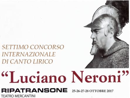 Si svolgerà dal 25 al 28 ottobre 2017 la VI Edizione del Concorso Internazionale di Canto Lirico “Luciano Neroni” nello splendido scenario del Teatro Comunale "L. Mercantini" di Ripatransone