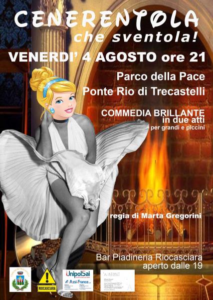 Venerdì 4 agosto alle ore 21 al Parco della Pace a Ponte Rio di Trecastelli ritorna il teatro all'aperto con una spassosissima commedia dialettale dal titolo "Cenerentola che sventola" per la regia di Marta Gregorini.