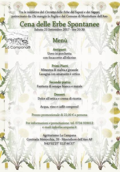 Torna il 23 Settembre, l'annuale Cena le Erbe Spontanee! Occasioni speciali per venirci a trovare anche a Settembre, la Vendemmia e la nostra Cena delle Erbe Spontanee. Non abitate dietro l'angolo?