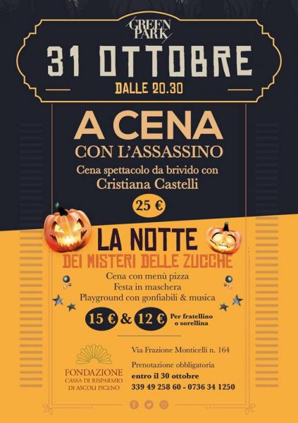 #GreenPark #CircoloSportivoFondazioneCarisapIl 31 ottobre al Circolo Sportivo Fondazione Carisap - Green Park: prenotazione obbligatoria entro il 30 ottobre ai numeri 339.4925860 – 0736.341250 ;-)cena con assassino e non cena con delitto ... nuances ^_^