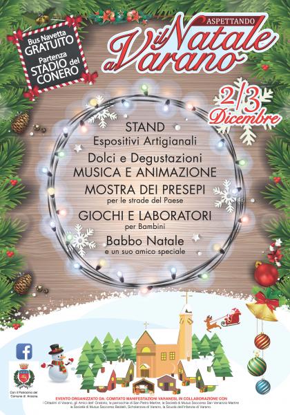 Anche quest'anno, nelle giornate di sabato 02 dicembre a partire dalle ore 16.00 e domenica 3 dicembre a partire dalle ore 10.00, per le vie del centro storico della caratteristica frazione Varano di Ancona, si ripete per l’undicesimo anno, l'evento natalizio varanese all'insegna della beneficienza con stand, prodotti tipici, mostra dell'artigianato, attrazioni ed intrattenimento per grandi e piccini.